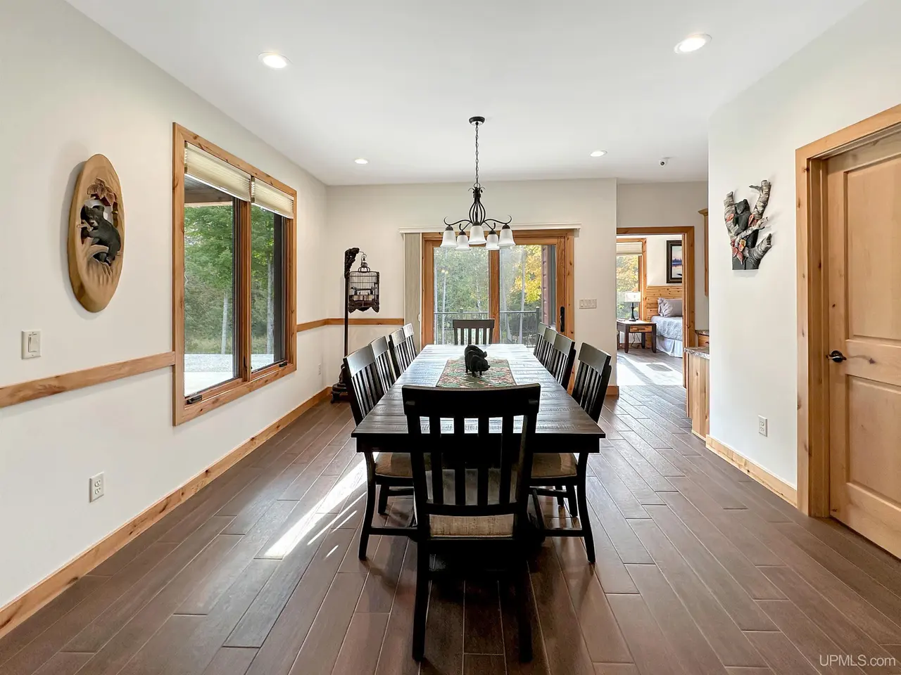 Secluded Cedar River Retreat Carney, Michigan Experience the perfect combination of craftsmanship, comfort, and natural beauty with this remarkable 35-acre riverfront estate. Offering approximately 1, 800 feet of pristine Cedar River frontage, this property provides tranquility, stunning views, and a true connection to the outdoors. This 3-bedroom, 2.5-bath home features top-of-the-line construction and thoughtful design throughout. The expansive open-concept main living area boasts a beautiful fireplace, heated floors, and 36-inch doors for easy accessibility. A large master ensuite occupies one end of the home, providing privacy from the two additional bedrooms located on the opposite end. The home is fully furnished and move-in ready, showcasing meticulous care and attention to every detail. A two-car attached garage, with one bay currently set up as a workshop, complements the property, along with two immaculate pole buildings offering abundant storage or hobby space. Step outside to enjoy over 1, 300 square feet of poured patio, ideal for entertaining or simply relaxing while taking in peaceful views of the Cedar River. For guests or additional accommodations, the property includes three RV hookups, each with power and water access. Set well back from the road, this home offers exceptional privacy while remaining conveniently close to local amenities and recreation opportunities. Every inch of this property reflects quality, care, and pride of ownership. Whether youre looking for a permanent residence, seasonal retreat, or riverfront getaway, this turnkey estate delivers comfort, beauty, and seclusion in the heart of Michigans Upper Peninsula.